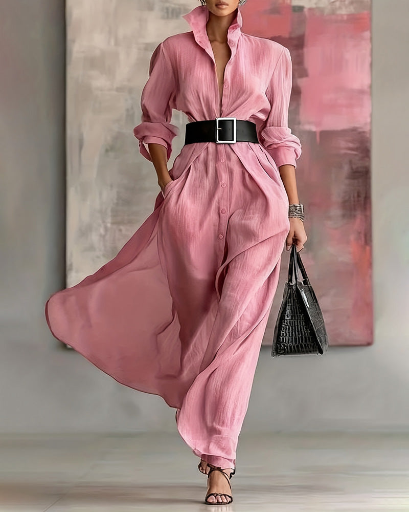 Pohodlné splývavé dlhé košeľové šaty s opaskom