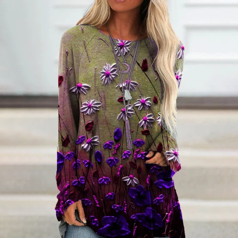 Elegantná voľná blúzka s dlhými rukávmi a potlačou