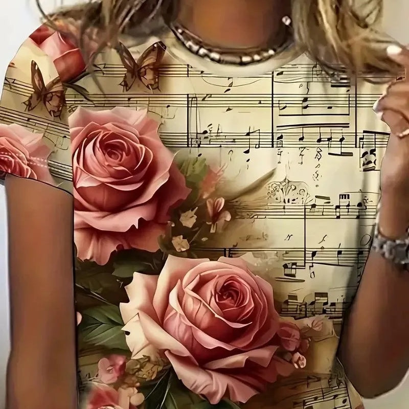 【S-4XL】🌸Dámsky top s okrúhlym výstrihom a krátkym rukávom s potlačou