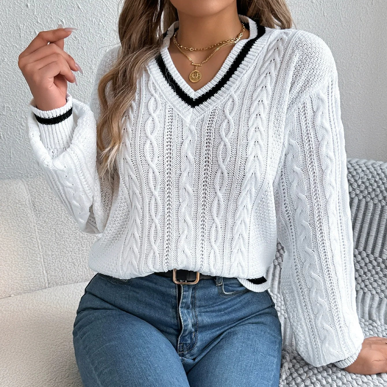 【S-XL】✨💖Dámsky sveter s dlhým rukávom a výstrihom do V